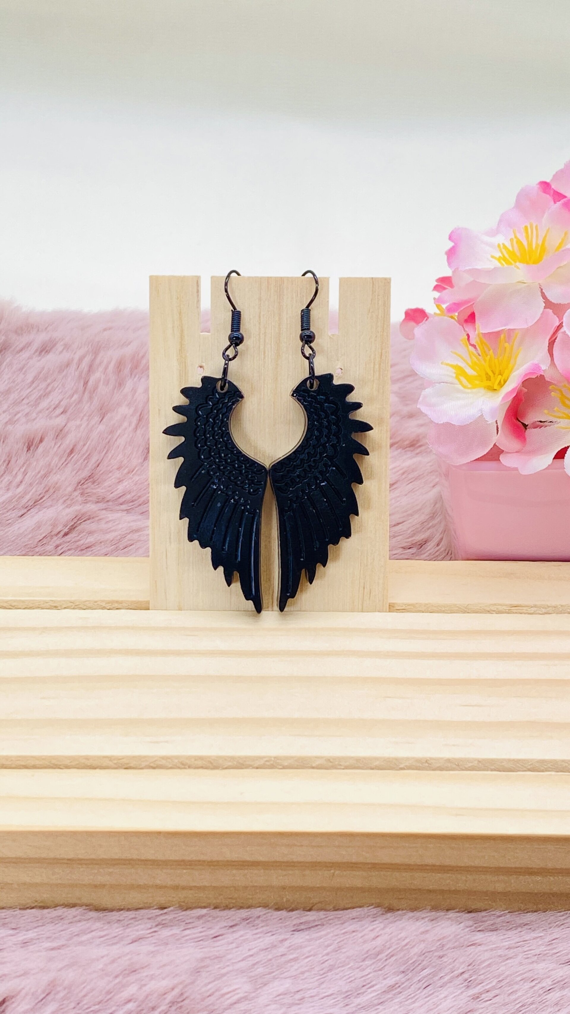 Pendientes de resina - Alas negras | Diseño elegante y simbólico