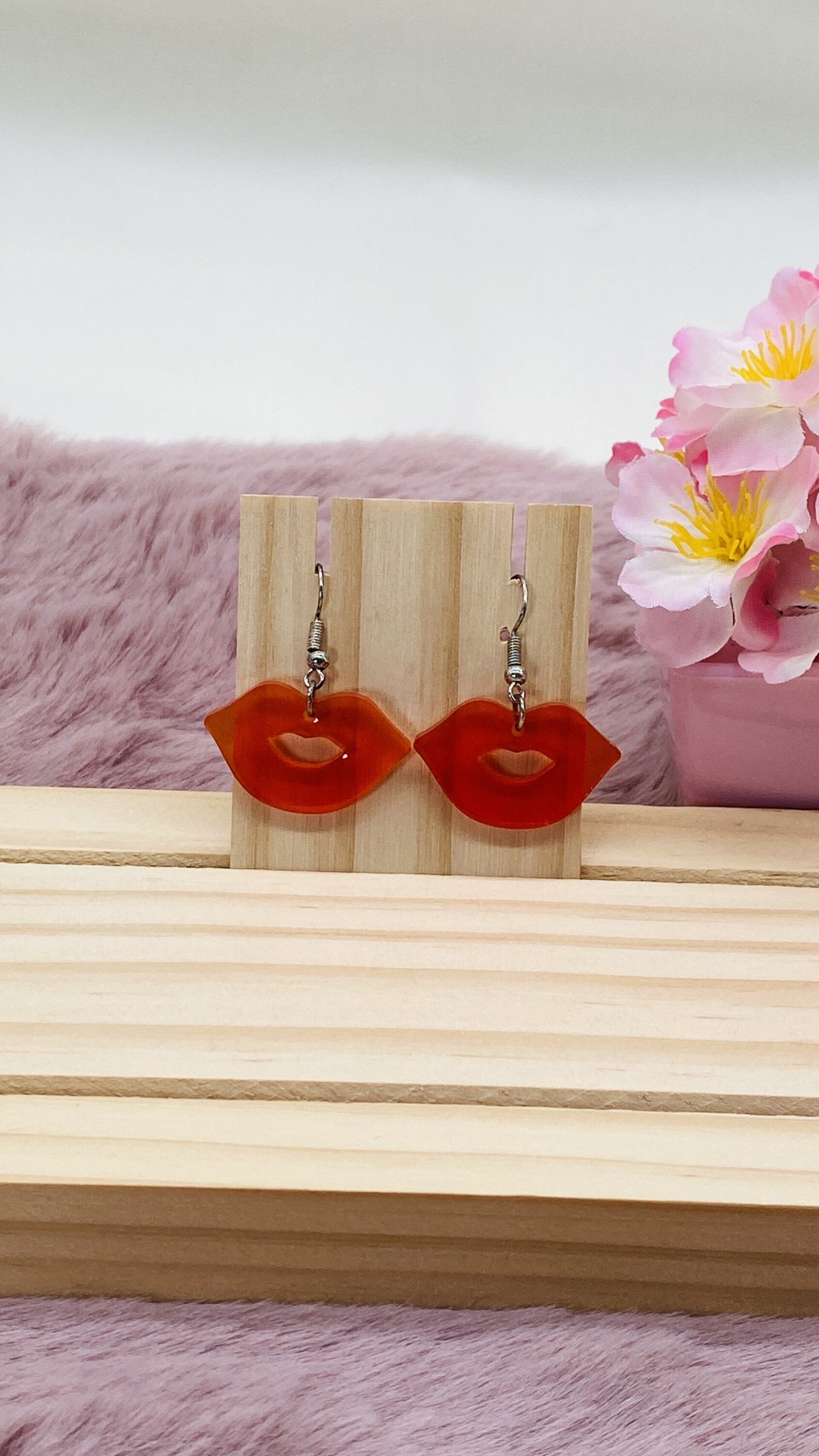 Pendientes de resina – Labios rojos atrevidos hechos a mano
